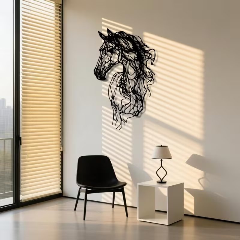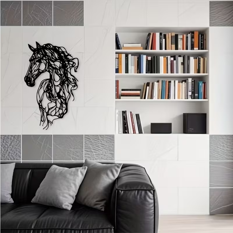NEXTSTEP1 Abstract Metal Horse Wall Art – Modern Indoor/Outdoor Decor (50cm x 31cm)