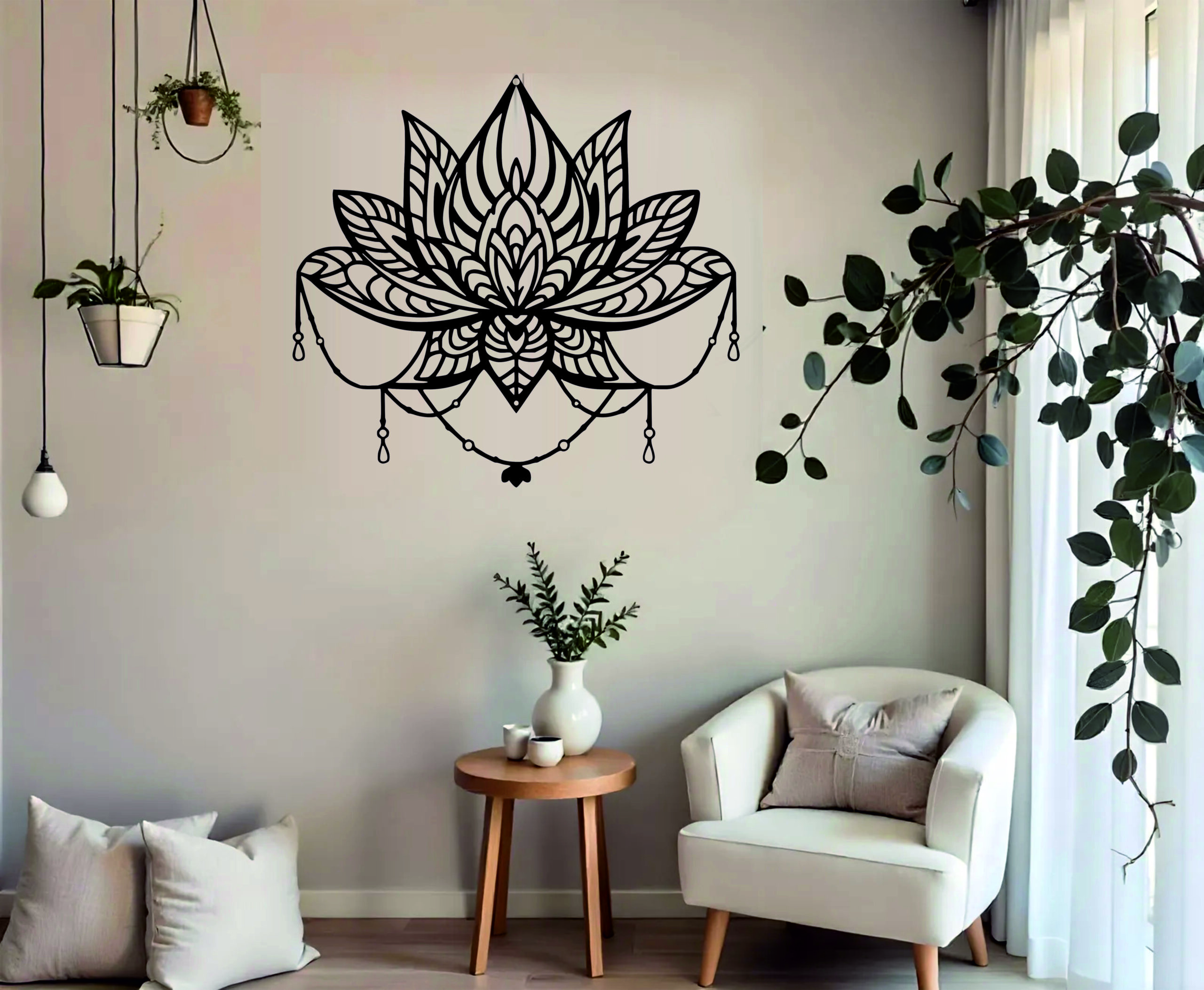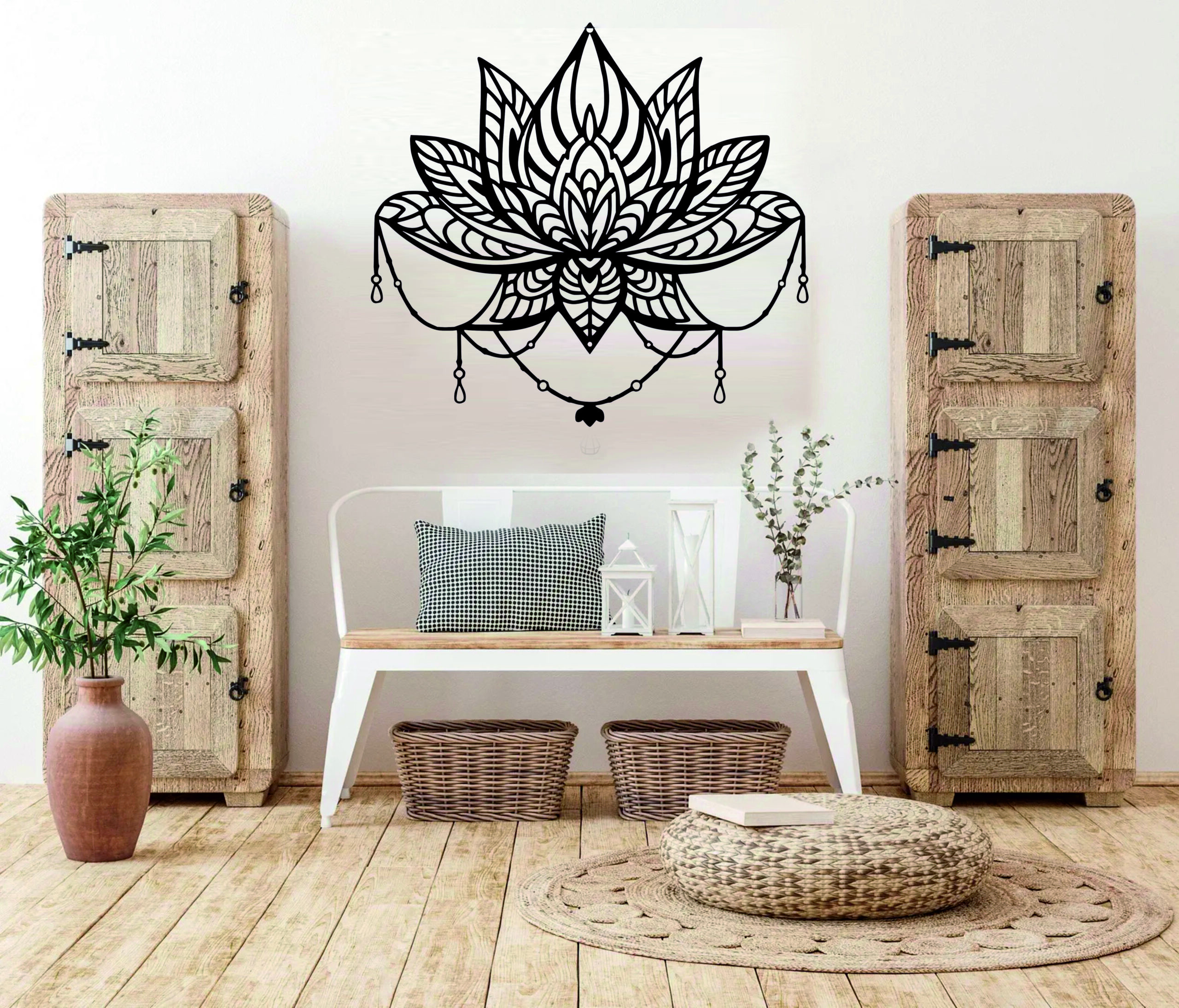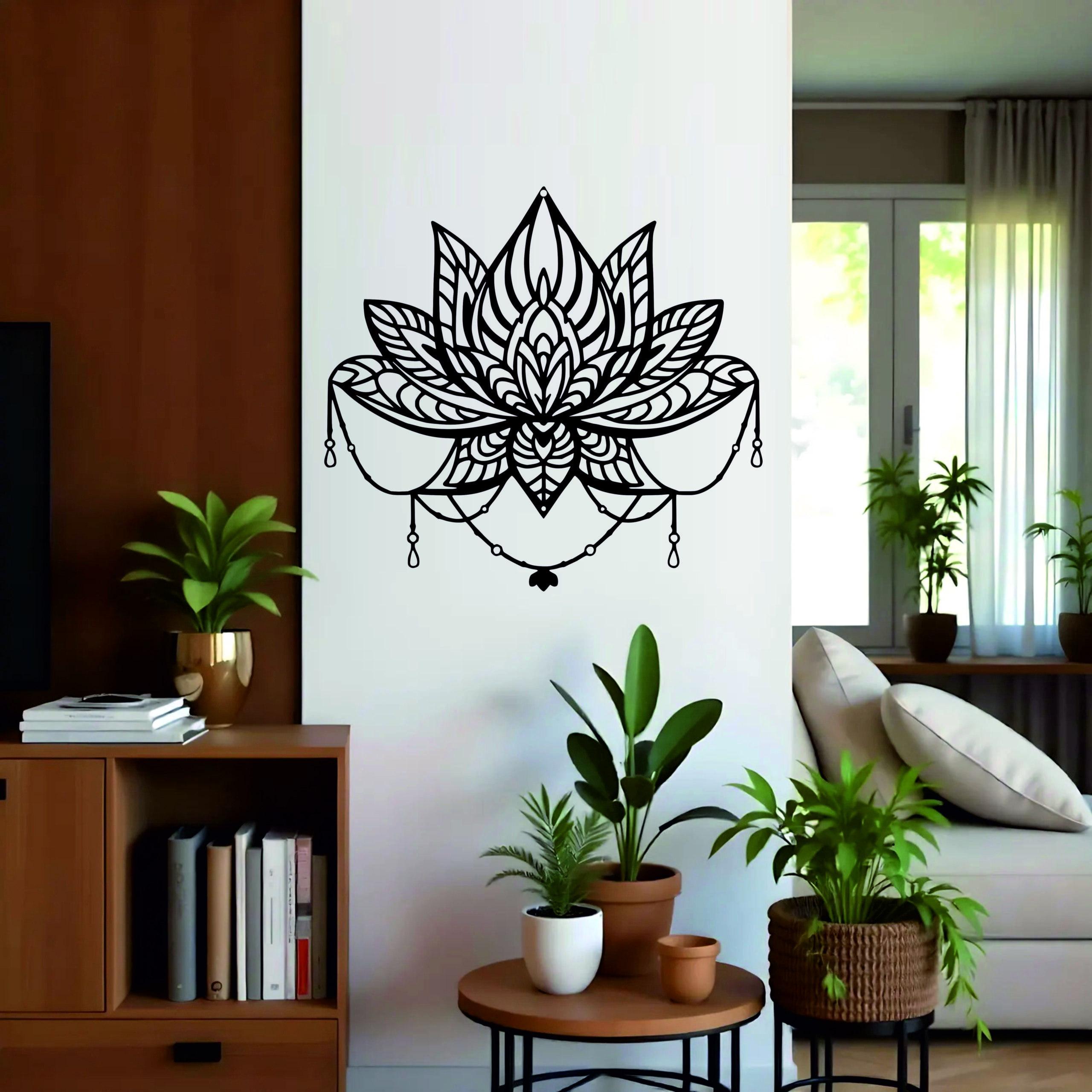 NEXTSTEP1 Lotus Black Flower Metal Wall Art for Home, Bedroom & Office (46cm x 41cm)