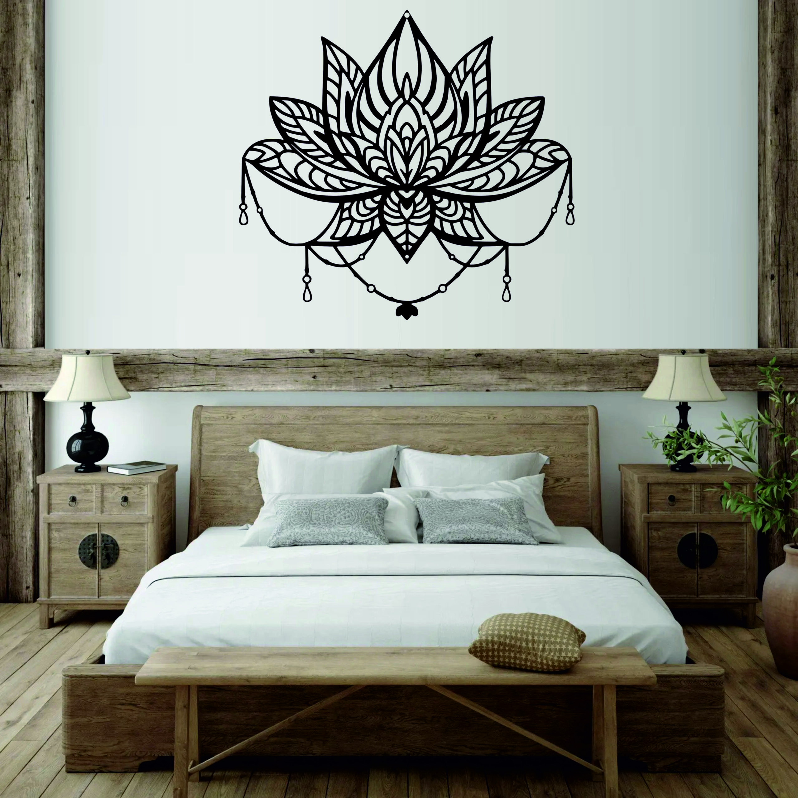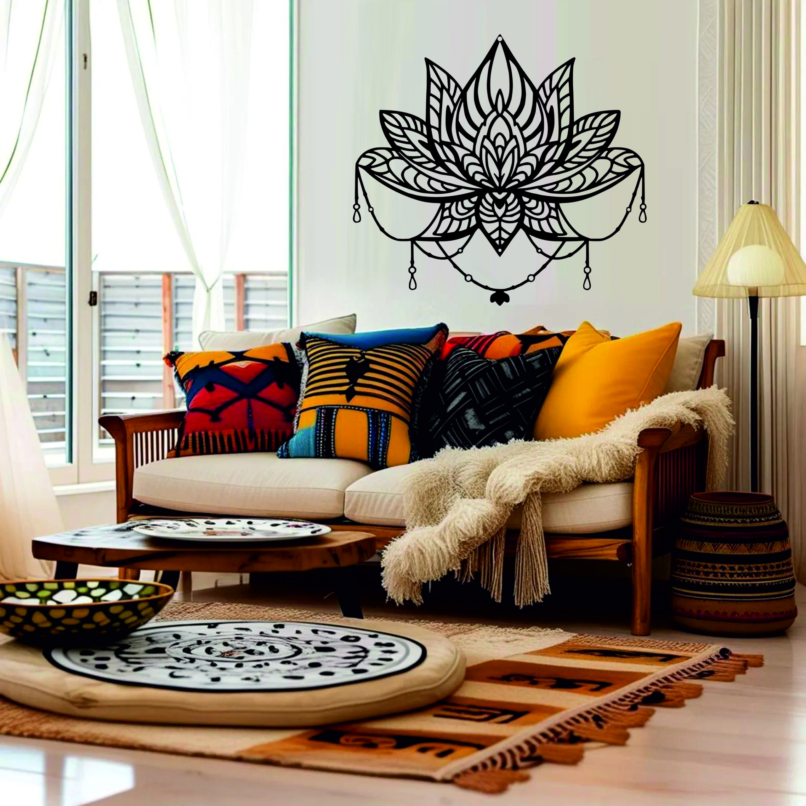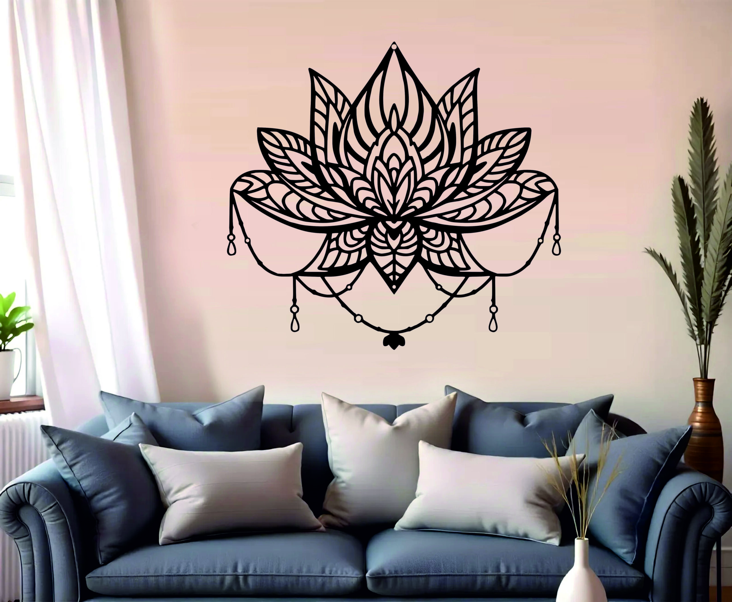 NEXTSTEP1 Lotus Black Flower Metal Wall Art for Home, Bedroom & Office (46cm x 41cm)