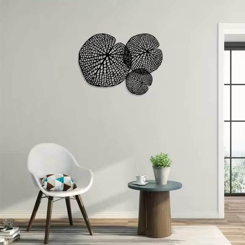 NEXTSTEP1 Metal Lotus Leaf Wall Art, 3D Black Abstract Openwork Lotus Leaf Hanging Décor (50cm X 38cm)