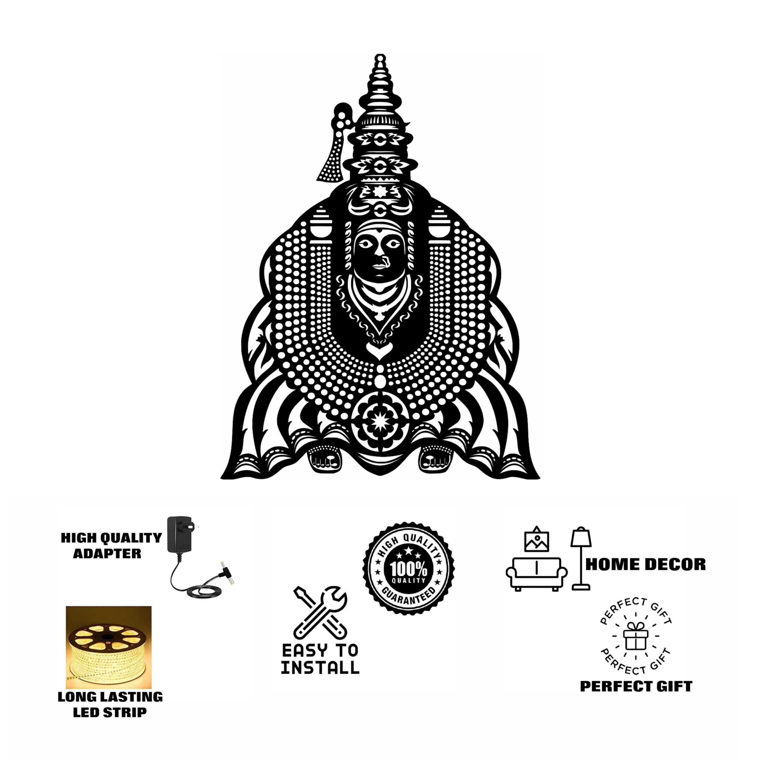 NEXTSTEP1 Tulja Bhavani Metal Wall Art – 24×18 Inch Backlit Spiritual Wall Hanging